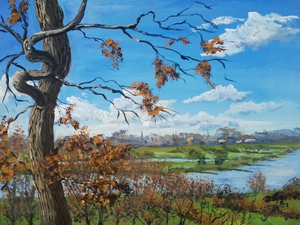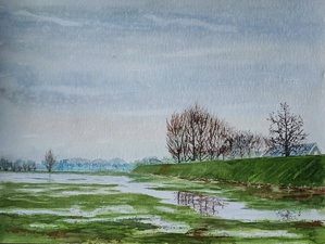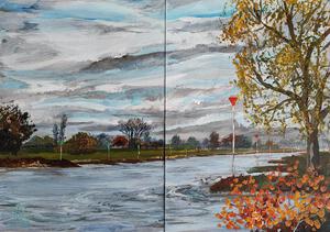 2023De IJssel van de vissteiger richting Dieren. Het is een tweeluik op paneeltjes van 21x30.