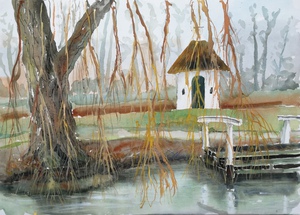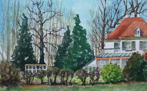 2019Schuilend voor de regen onder het afdak bij het Posbank paviljoen geschilderd