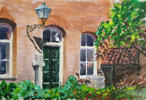 2019Prachtig hofje in Zutphen, alleen tot 13.00 u. te bezichtigen. Met het beeld van Zusters des Gemene Leven van Maïté Duval.